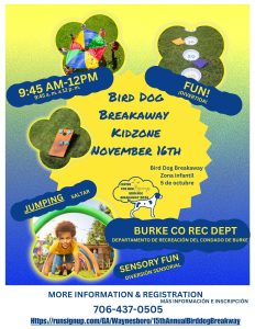 It’s time for our 17th annual Bird Dog Breakaway 5K Race/Walk!! Registration is open now! Sign up to walk, run, or just come have some fun with us on November 16, 2024. There will be a sensory friendly kid zone and vendors selling various goods. We hope to see you there!!
